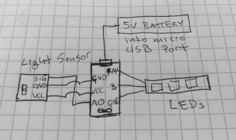 Also, it turns out that using a light sensor is perhaps not the best choice because it only works if the is a significant amount of ambient light, and the best environments for a light up hula hoop are lower light situations.